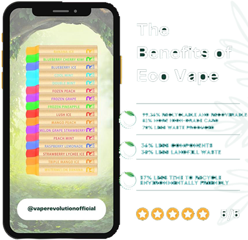 At Smoke Vape Revolution, we are committed to revolutionizing vaping with eco-friendly options focused on sustainability without compromising on flavor or quality. We are dedicated to minimizing our and your environmental footprint by nurturing conscious choices and giving back to a greener, cleaner planet.